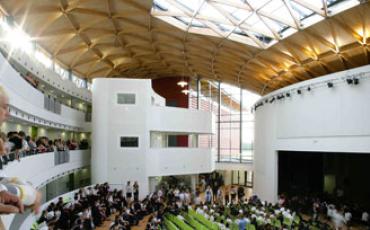 This stunning grid shell spans 28 metres and demonstrates the light weight and strength of wood.