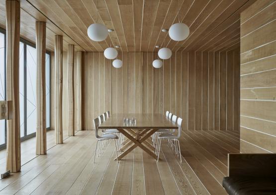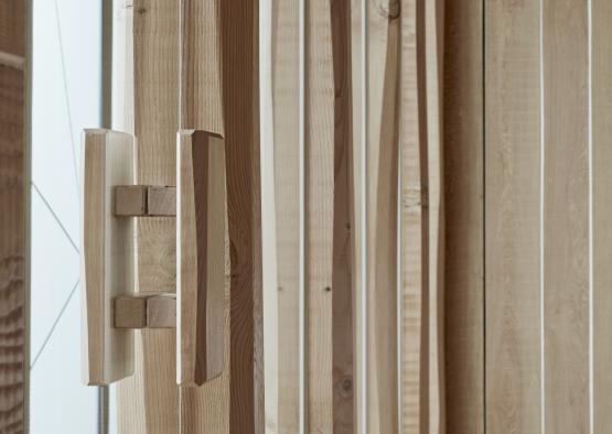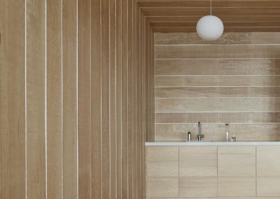 The meticulous attention to detail shown by the carpenter ensured the contiguity of spatial geometry, aligning door openings, joinery and building services to the lines set out by the timber.