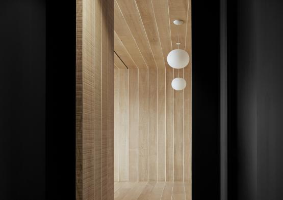 When entering 106 Flinders Street, one’s senses are primed by a quiet, dark threshold space – in contrast to the outside. One journeys through the entryway before entering the timber lined spaces within, heightening its effect through this experiential contrast. By using a single natural material for the floors, walls and ceilings the design provokes clarity of space and materiality.