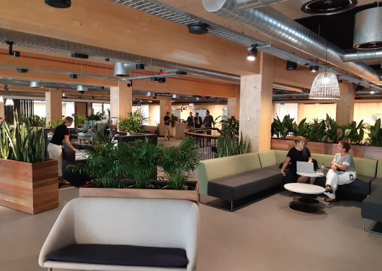 Early documentation is necessary to enable prefabrication, requiring a very different approach to resolving the design, coordinating procurement and services, and finalising details ahead of construction, as it is difficult to make onsite adjustments. During construction, all timber elements were fabricated off site to minimise waste and facilitate transportation. Once on site, the prefabrication helped achieve significantly shorter construction times. With entire levels built in as little as eight days, and construction time totalling 15 months, this represented a reduction of 20 per cent compared to comparable steel and concrete buildings.
