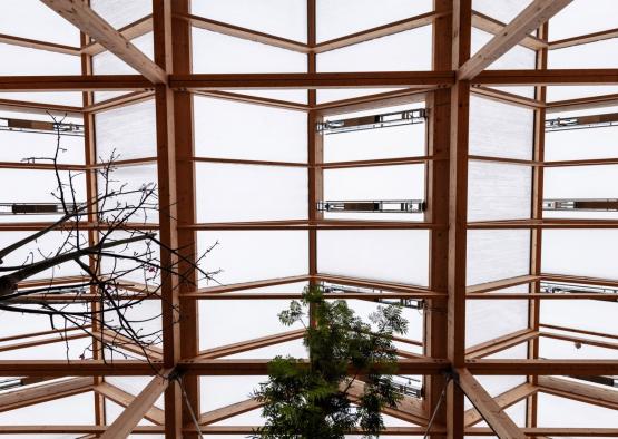 Glue-laminated timber (glulam) was the perfect material to achieve the high sustainability intentions of the project. Mass timber became the primary material of the atrium structure. Glulam is one of our most efficient and environmentally friendly construction materials and replaces carbon and energy intensive materials such as concrete and steel. Sangberg explain that “many of other construction systems used on the project have been specified due to their ability to be reused and recycled, extending their useful lifetime.”