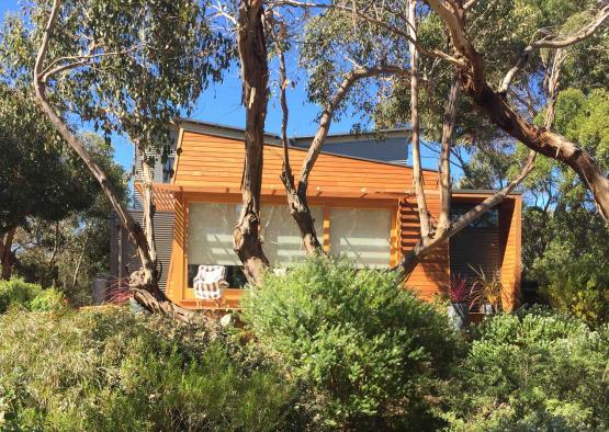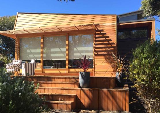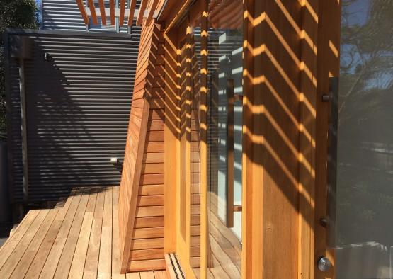 This small studio at the rear of an existing holiday house in Aireys Inlet celebrates the materiality of bushfire resistant Australian timber in the context of the Great Ocean Road.