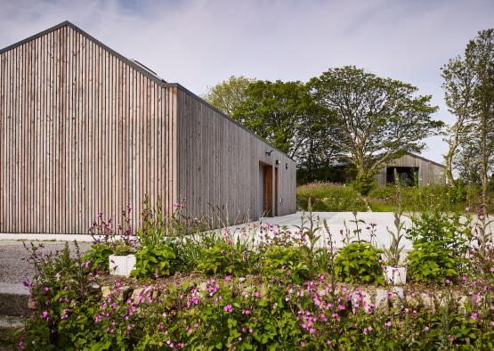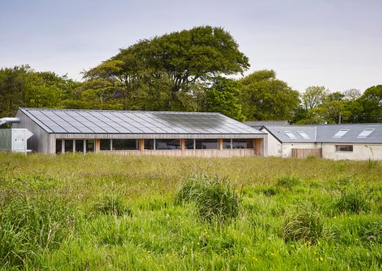 The roof form references classic agricultural forms of the region, and nestles neatly within the greater architectural palette of Cornwall.
