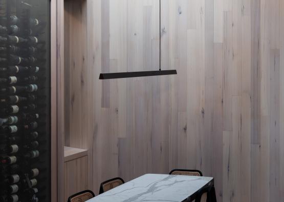 Additional locally designed and made furniture pieces include the timber dining pendant by Touching Space and a bespoke timber framed dining table by Scott Van Tuil. Large glazed timber framed sliding doors house a magnificent wine collection in the dining space.