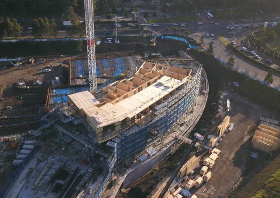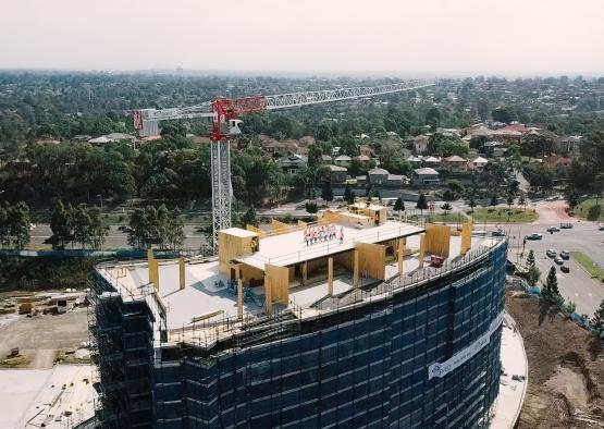 At first principle the sheer volume of mass timber used in this first building of the AVEO Circa Norwest masterplan (app. 2,700m3) has significantly reduced the project's embodied carbon footprint by app. 2,700 tons of carbon compared to an equivalent volume of concrete. The applied timber construction methodology is market leading and the high level of prefabrication reduces energy and water consumption as well as waste production during the construction phase and on site. CLT is approximately 75% lighter than reinforced concrete. This allowed for a much leaner design of concrete footings and transfer structure in ground and throughout the podium levels, thus further reducing the use of reinforced concrete. The reduced weight also reduced transport requirements, truck movements and crane sizes.