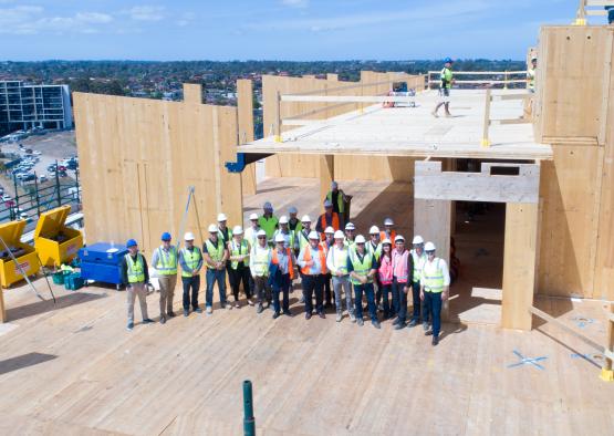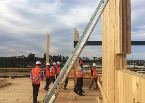 The main driver for the use of prefabricated mass timber construction technology was the associated time efficiencies, and minimisation of onsite labour where possible. The client was committed to the delivery of a certain number of apartments within a fixed timeframe – a requirement that could not have been achieved with