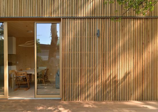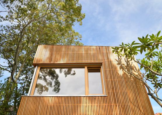 Blackbutt battens (40x40 mm) were used as the cladding, built over a batten and counter batten substructure. This creates an open cavity behind the cladding to ensure optimal ventilation of the facade.