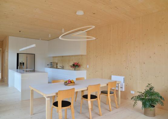 Spruce timber was used for the manufacturing of the CLT panels. All walls and ceilings were left untreated, whilst the floor was treated with a hardwax oil as it was the most used surface.