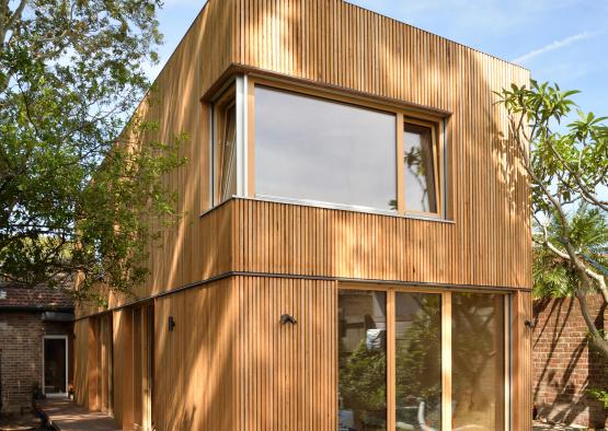 Timber cladding was chosen for its low carbon footprint, renewability, and the aesthetics of a naturally well ageing material with low maintenance.