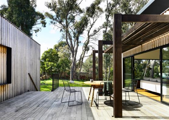 Decking used blackbutt timber, a sustainable Australian hardwood that is perfect for outdoor use. The timber has naturally greyed, allowing it to sink lightly into the surrounding palette of nature.