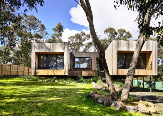 The astute design of this family residence engages intimately with the natively vegetated site, situated on a half acre plot overlooking the regional city of Ballarat.