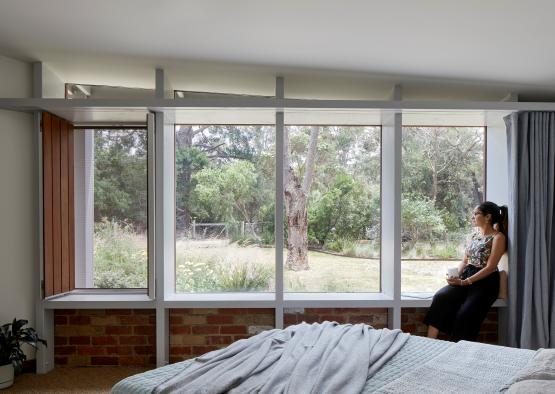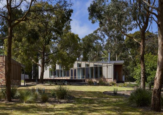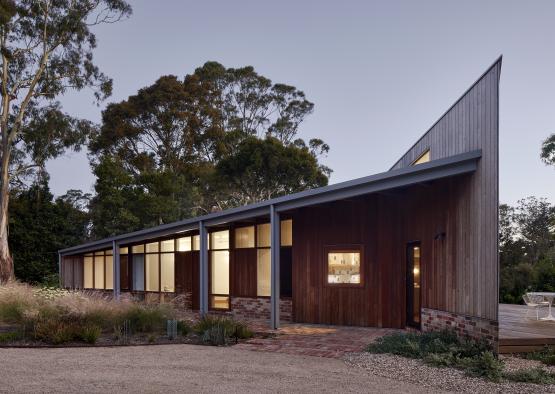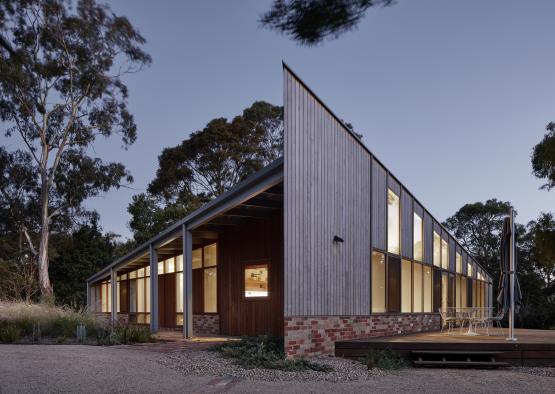 The exterior aesthetic was focused on complementing the bush setting. The timber will grey off over time and take on the qualities of a gum tree. Meeting bush fire attack level requirements supported the decision to use native hardwoods.