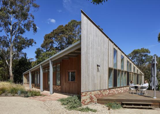 FSC certified blackbutt tongue and groove boards were used as vertical timber cladding. Livos plant oils were used as a coating, preserving the timber but allowing it to grey off gracefully.