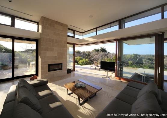 This project used windows, lift-slide doors, stacker sliders and corner stacker sliders as well as motorised clerestory windows, fixed glass units and doors, manufactured and installed by Paarhammer. All are double glazed, Low-E and Pyro40 (which includes Low-E as part of bushfire glass) with U-values of 1.7 and 1.8. High performance glazing achieves WERS ratings from 4.5 cooling stars to 7 heating stars with energy savings from 61% to 75%. They reduce heat loss and improve thermal comfort while maximising daylight transmission.