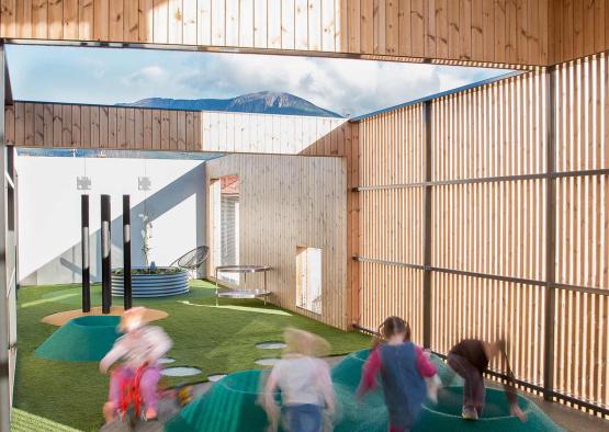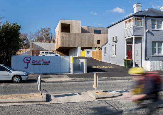 Lady Gowrie’s new Integrated Child and Family Centre responds to the clients request to use natural materials where possible and to create spaces that were calm, yet playful and non-institutional, and timber fit the bill. The new development rehabilitated a site containing three industrial warehouses, with a new entry building conceived as an elevated timber volume that was designed to weather with time.