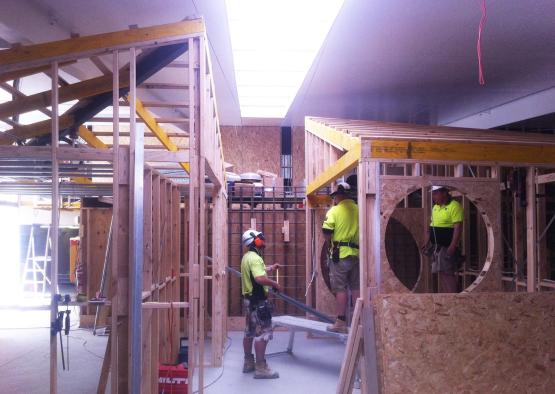 Vertical Support or Wall System: Approximately 80% of the new building is constructructed with Tasmanian oak timber framed partition walls in combination with steel columns.