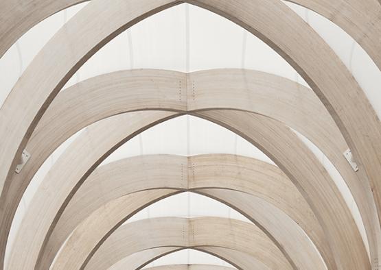 155m3 of larch glulam, of which about 1/3 bended to a radius.