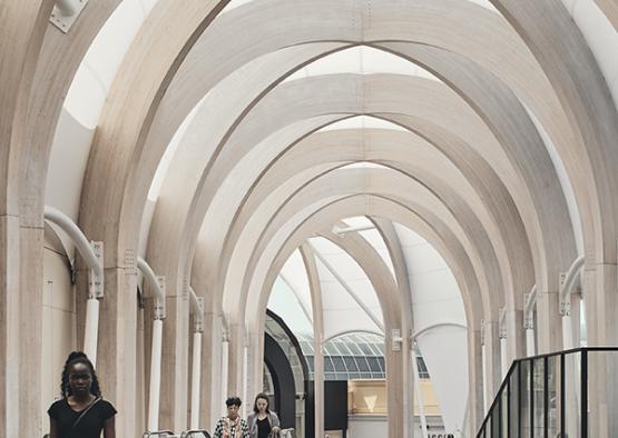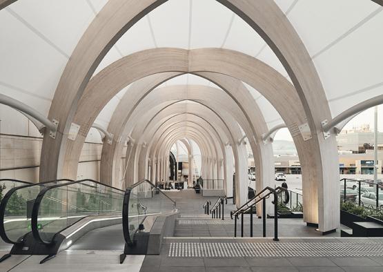 The Link is a new pedestrian walkway connecting the new Chadstone MGallery Hotel, 5-stars by Sofitel, to the Fashion Capital of Australia, the number one retail, dining and entertainment precinct in Melbourne, called Chadstone Shopping Centre. The arched structure truly resemble the shape of a cathedral, but MAKE Architects who designed it took cue from the arched glass roof of the shopping centre.