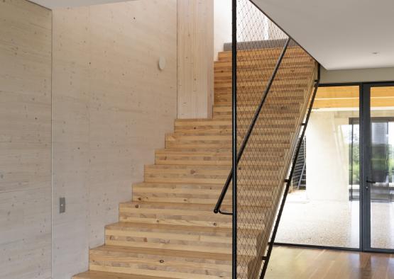 Internally the CLT is celebrated by exposing the structure on the walls and floors. This demanded absolute precision in the construction system to achieve a finely crafted outcome.