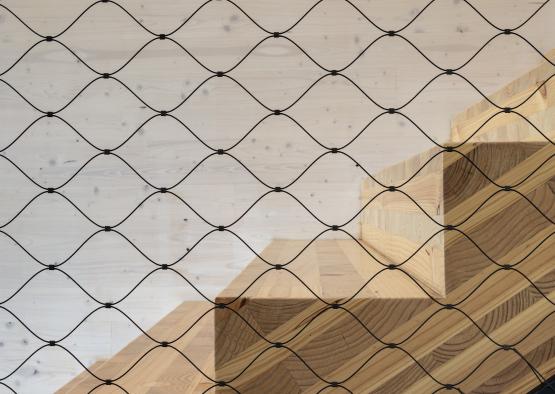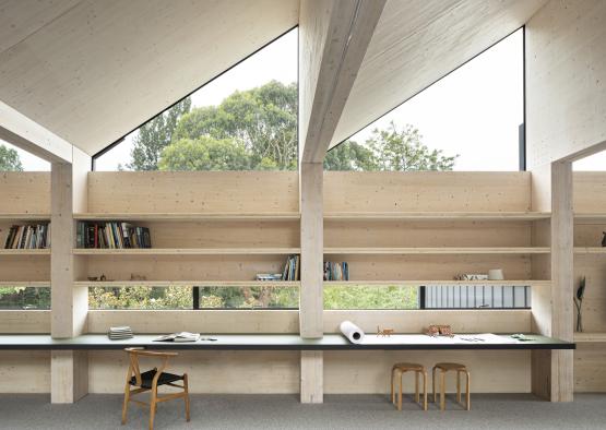 Interior elements such as bookshelves, desks, pivot doors and bar units are also made from CLT to emphasise the natural qualities of the materials at a finer scale.