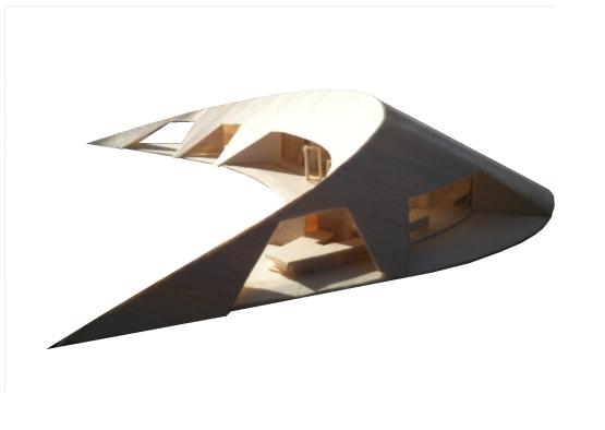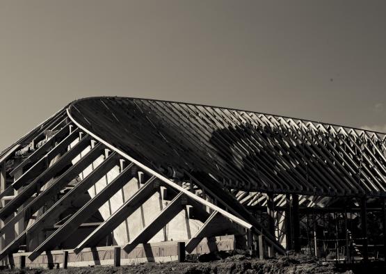 The unique roof shape required significant geometric studies to map out the convex on one side and concave on the other. Computer generated scissor trusses were designed to support the curved elements, and allowed assembly and construction by local truss makers. The building elements were prefabricated from the computer drawings to minimise waste, and the roof shape was assembled in a single day for the laminated ring beam, and a single day for  the roof trusses.