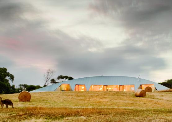 Built on a highly exposed site on the south coast of Victoria, the Croft House uses architectural form to provide shelter from harsh prevailing winds.