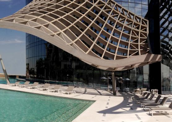 This striking timber shade and cooling structure embellishes Dubai’s D1 Tower, providing passive climate control and a link to the site’s history.