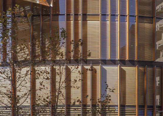 Closed Cavity Facade: The timber blinds use 275km of accoya and the mullion reveal cladding uses 25 km of accoya
