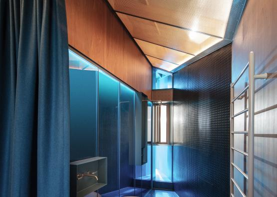 Spotted gum contrasts well with its deeper hue and dramatic grain, adding a tonal and textural interplay between the two species. The spotted gum is adopted in the form of hardwood ply panels for surface treatments such as internal wall linings, floors and joinery faces, softening the acoustics of the open plan.