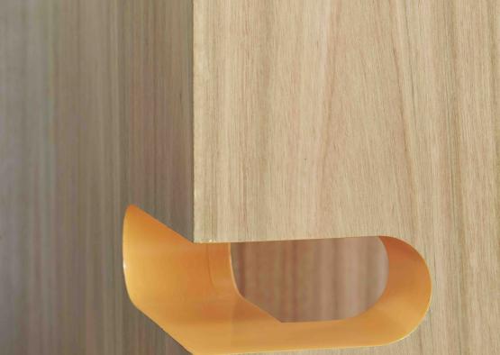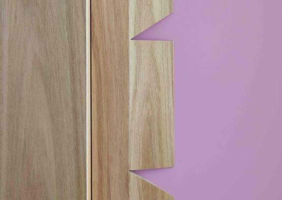 The Tasmanian Oak veneer and its featured grain reinforces the design concept of bringing warmth and texture into the spaces whilst offering a continuity between the joinery elements. The consistent colour of the timber works in harmony with the pastel colour accents used throughout the house.