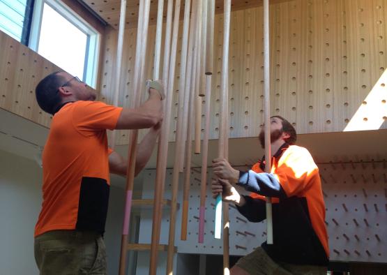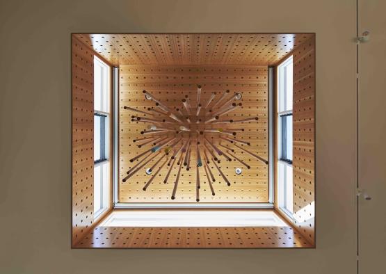 Dowels are elevated to higher level in this residential project, blurring the boundaries between the functional, the decorative and art.