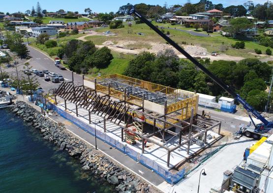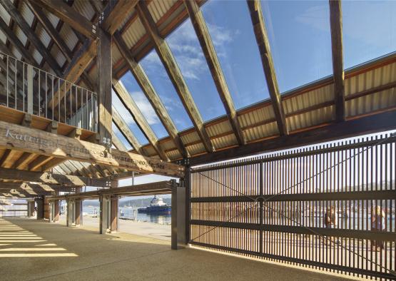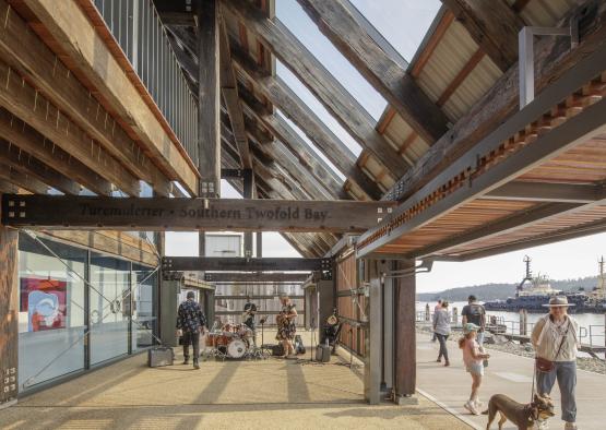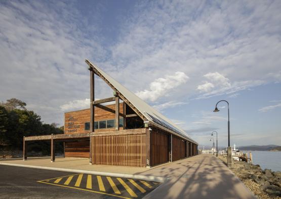 The structure of the building makes use of recycled hardwoods as a celebration of the local timber industry. The building form and cladding make reference to the maritime fishing industry, which featured traditional timber post and beam structures.