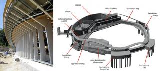 The dome's column façade is complete with wood/glass elements made to measure by Merk Timber (Germany).