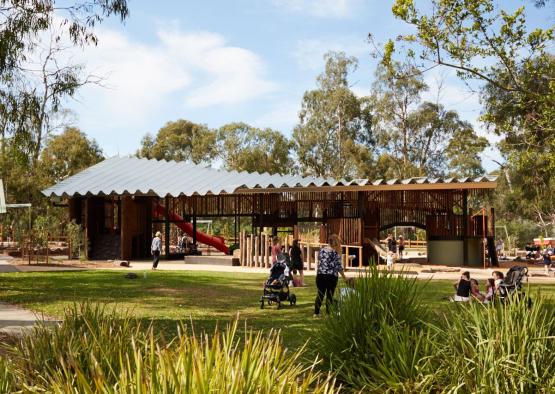 The core idea was to provide a large covered playground that is SunSmart and usable in all weather. The chosen design prioritises passive solar design strategies, allowing the penetration of winter sun while maximising summer shading.