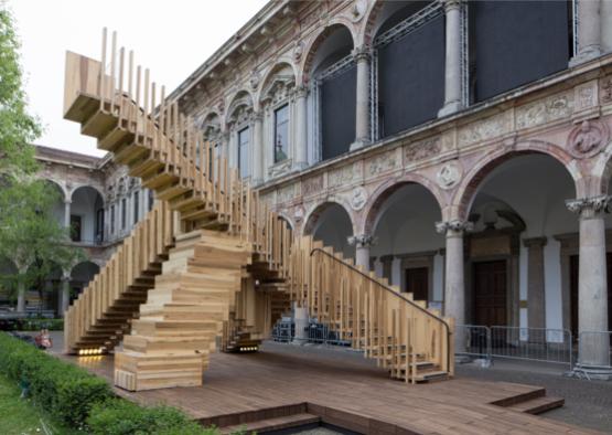 Endless Stair took inspiration from the structural, social and artistic possibilities of the staircase, the aspect of architecture most closely associated with sculpture and a place where people inevitably cross paths. Devised with M.C. Escher’s popular drawings in mind, Endless Stair is not a stair without end, but a stair designed to be endlessly reconfigured: an entirely prefabricated construction, each piece an essential part of the additive structure, where loads are transferred through demountable flights that can be recycled on another site in a different configuration. Endless Stair also took inspiration from the wood from which it was constructed and gave rise to an entirely new product using Tulip Tree wood as a cross-laminated timber (CLT) for the first time, with an extraordinary strength-to-weight ratio.