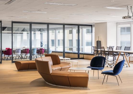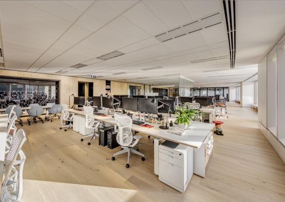 An innovative approach to the design of the timber floor resulted in a number of benefits. An elevated floor structure enabled for all cabling to be located underneath the surface between battens, avoiding the need for unsightly powerpoles. The interior acoustic quality was also greatly enhanced by the inclusion of a multi-layer acoustic subfloor treatment. Wellbeing is enhanced through the use of: timber flooring with natural finish, resulting in a healthier environment, minimising the effects of dust allergies; the naturally ventilated wintergarden as a yoga and break out space; a large, sundrenched staff kitchen, food storage/preparation and communal dining area; an abundance of natural light and individual task lighting to lower overhead artificial lighting levels; and waste recycling bays well located throughout the floor plate.