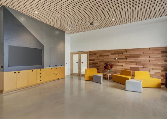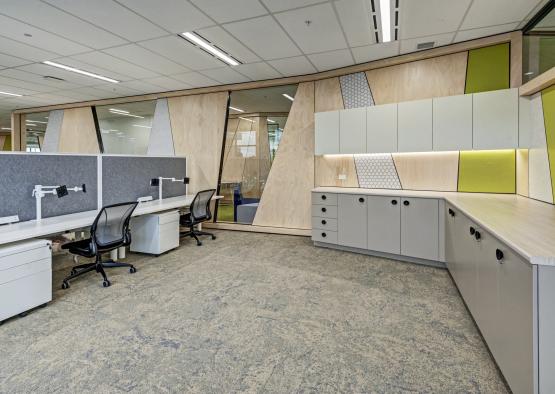 Using play on scale and clever detailing, this fitout project for the AEU celebrates a creative, unique and varied use of readily available timber products and wall paneling. The result is an energised workplace with diverse spaces that fosters a culture of collaboration.