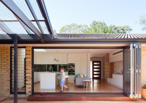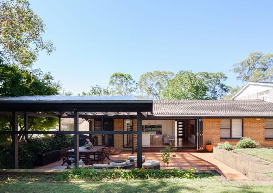 This renovation project transforms a 1960s brick house into a welcoming, light-filled home wrapped in a Spotted Gum façade.