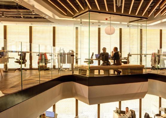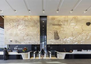 EY Tower features a world-first closed cavity facade with a timber blind system, which is highly effective at controlling the light and heat radiating from outside. This reduces the need for a large energy plant, resulting in significant cost and energy savings on heating and cooling the building. It is also Australia’s first fully LED lit building.