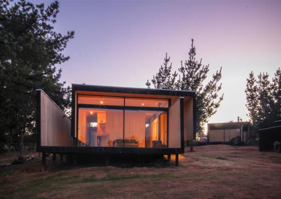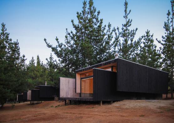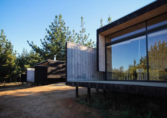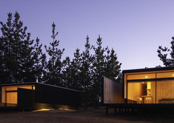 The initial brief was for two cabins on a rural property in the Chilean town of Puertecillo. As the requirement extended into more cabins, the design solution of folding the side walls over meant that a balance between privacy and architectural expression could be assured.