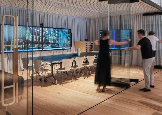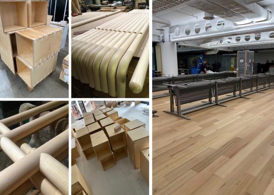 A new engineered timber floor product developed in Tasmania by NSFP was used throughout the project. The prefinished, engineered boards are installed throughout the 700 square metre studio space, informing the overall aesthetic of the space.