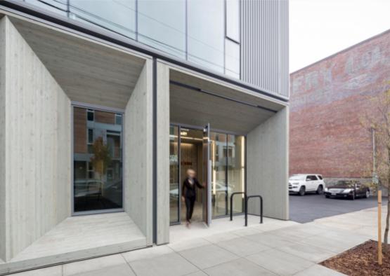 Framework is a direct adaptation of the historic small plate timber structures that weave through the building fabric of Portland Oregon’s central Eastside. Structurally little different to its neighbouring 100 year old structures, the elimination of the masonry perimeter walls necessitated a shift in identity. The retail frontage in the concrete base is allowed to take on a more sculptural reading, contrasting to the taut glass skin above. Traditional walls and windows are able to give way to a simple glass vitrine that allows the warmth of the wood interior to be clearly seen from the street.
