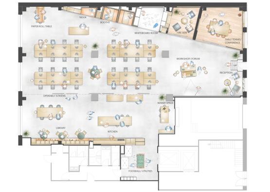 Hayball Studio’s approach to refitting their own architecture office in Sydney’s Surry Hills was inspired by contemporary learning environments. The adaptability, natural light, and open plan of modern work and educational spaces has proven successful in stimulating dynamic workplaces.
