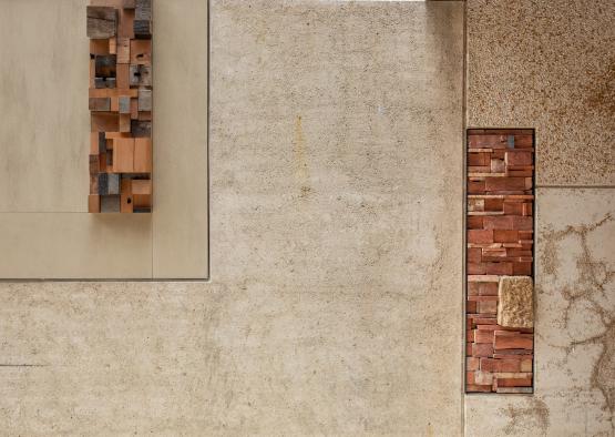 The team worked closely with fabricators to sculpt recycled timber ‘insertions’, using the recycled Oregon timber, as well as low value archaeological findings such as broken ceramic bottles, sandstone material and recycled bricks from the existing warehouse demolition. These panels integrate the history of the site throughout the building, deepening an understanding of place.