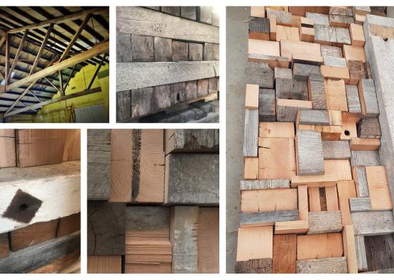 Materials and artefacts such as the Oregon structural beams of the Hedberg Garage warehouse were salvaged from demolition and archaeological excavation. The salvaged timber was recycled to make use of the existing rough sawn texture for acoustic diffusion and to also integrate stories of the history of the site within the building.
