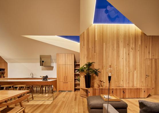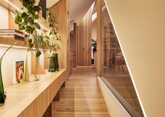 The strong use of timber was a natural choice for the project, in order to inspire a familiar sense of memory from their previously loved homes. Timber floored living zones are connected via ramps internally and externally for universal access, as the couple plan for longevity in the home, well in to their senior years.