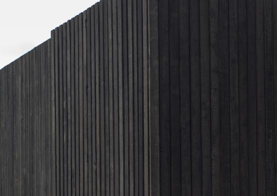 Rough sawn Silvertop Ash straight from a local mill clads the entire house, with a triple layer of dark stain creating an elegant aesthetic. The rough sawn timber allows small variations in the character of the timbers, softening the appearance of the material.