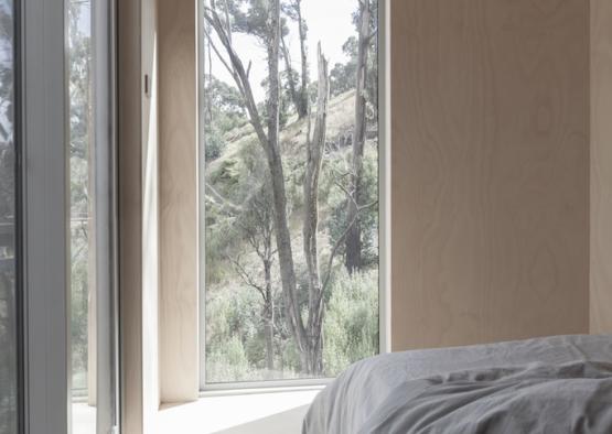 The core of House 28 in Wye River is made from three 20ft shipping containers. Designed by Studio Edwards, the soft plywood interior is contrasted with an armour like exterior to protect against the fire potential in the densely bushed coast.