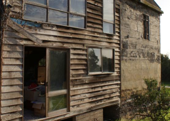 Passive evaporative cooling is harnessed through the use of old concrete water troughs (originally part of the chicory processing equipment) adjacent to the house, which are now full of water. New lightweight metal canopies over the ground floor north-facing windows provide shade and shelter at the entry.