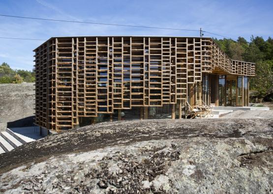 Atelier Oslo wraps an isolated Norwegian home in a slatted timber screen to provide shading and framed views.